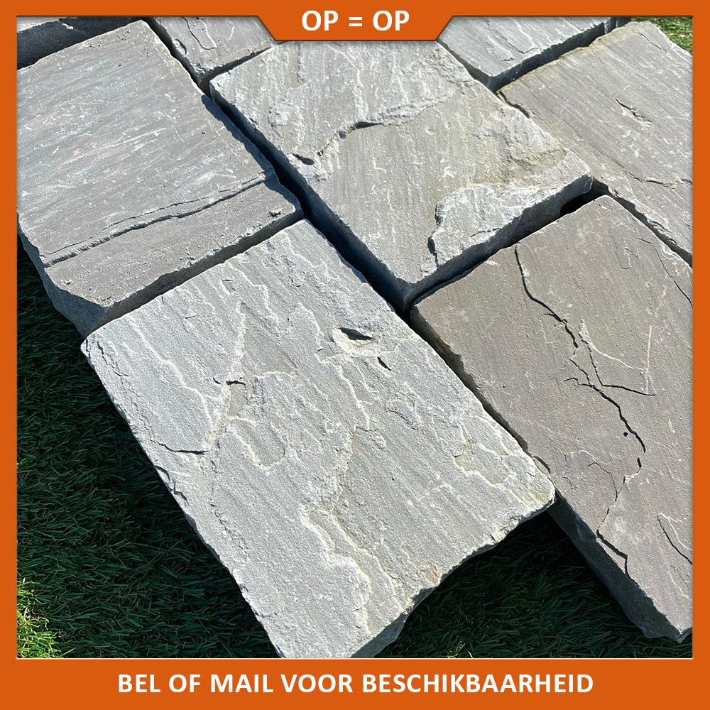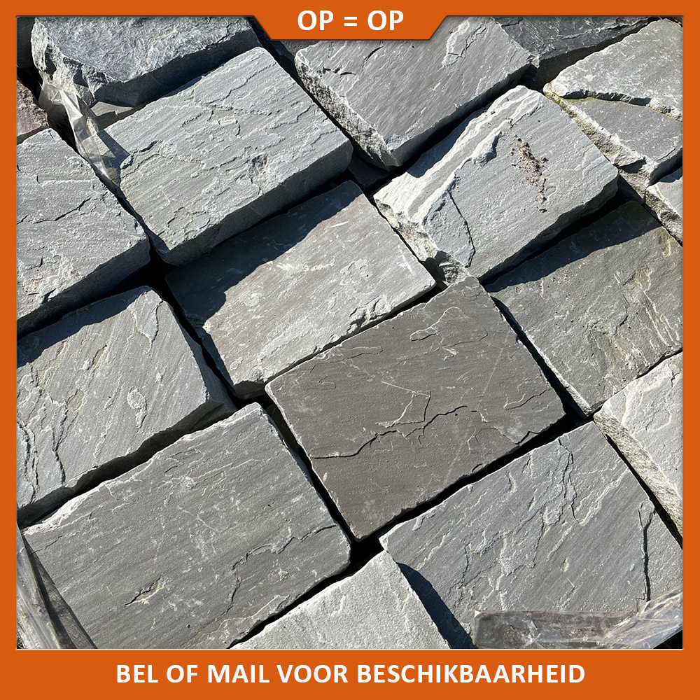 - Kandla Grey 20x5x5 cm circa 100 stuks per m2 (gecalibreerd + getrommeld)