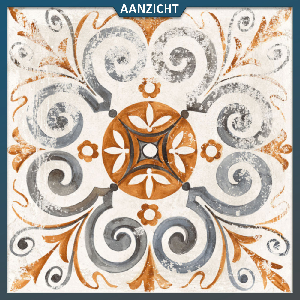 De Fruhling Dekore keramische tuintegels kenmerken zich door hun schitterende tinten blauw, beige, geel en andere warme kleuren, evenals hun diverse patronen die veel weg hebben van een Perzisch tapijt. Deze decoratieve tegels kunnen perfect worden gebruikt om een "tapijt" op uw terras te creëren, omringd door neutrale en rustige tegels voor een harmonieus geheel.