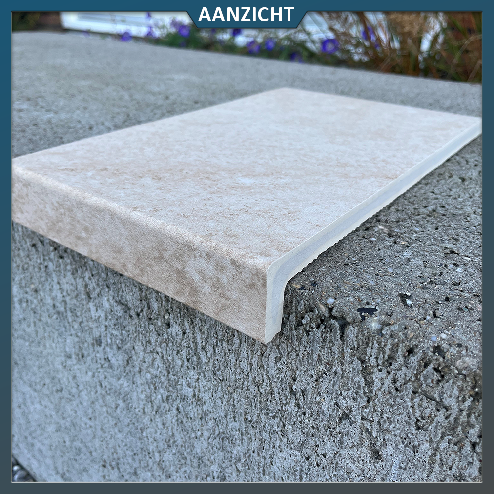 Zoals alle keramische zwembadranden van Natuursteenvoordelig.nl is ook de Evolution Beige Stone uit één stuk geproduceerd — dus geen verlijmde neus.