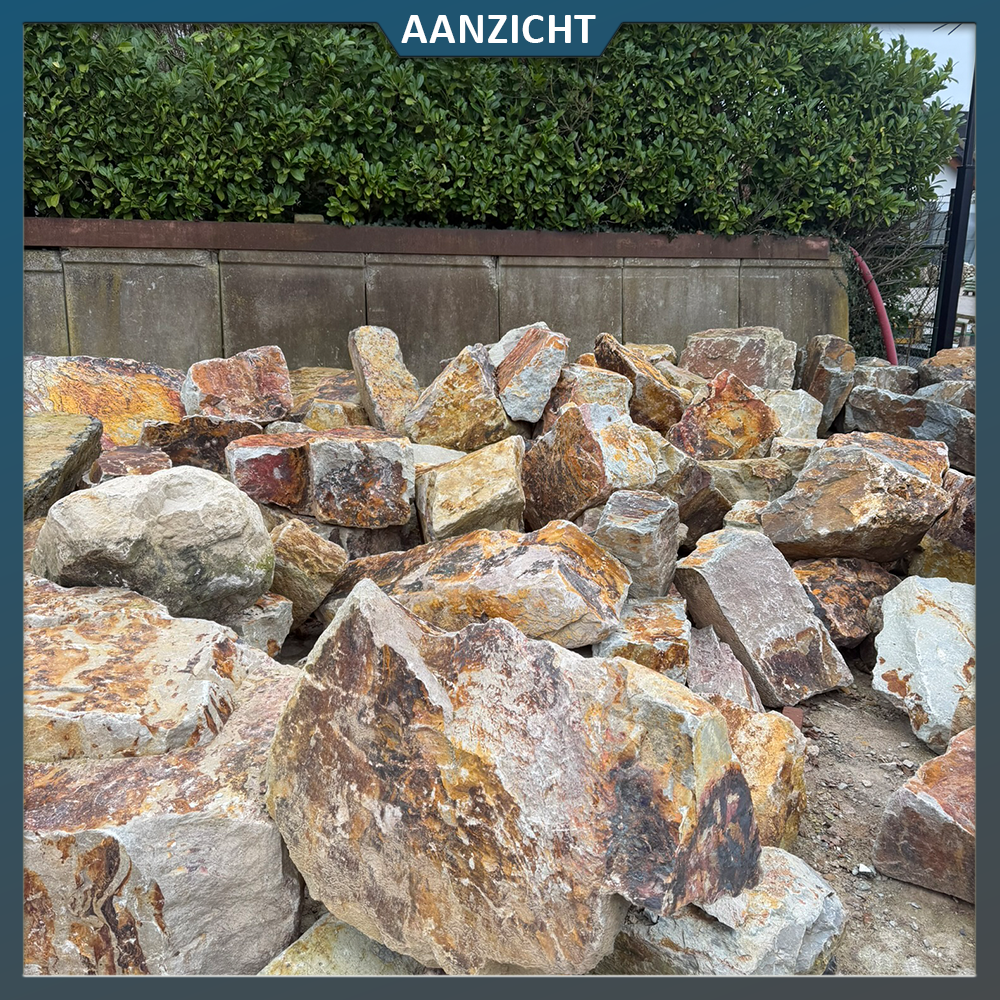 Grauwacke zwerfkeien kenmerken zich door een rijke, natuurlijke kleurvariatie. De kleuren zijn het best te omschrijven als een warme mix van bruin, grijs, beige, roestbruin of roodtinten, aangevuld met gele en oranje nuances. Deze kleurencombinatie zorgt voor een sfeervol, mediterraans gevoel en laat de keien mooi samensmelten met groen, hout en grind.